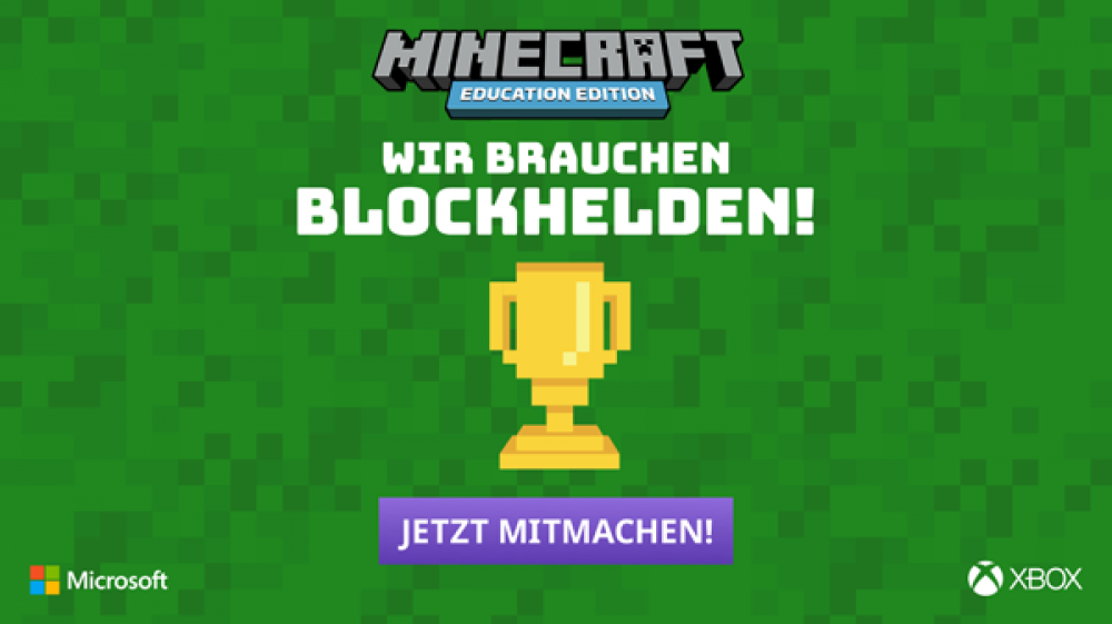 In Partnerschaft mit der Bildungsinitiative Code Your Life initiiert Microsoft gemeinsam mit Dir den Minecraft Wettbewerb: Blockhelden in der Minecraft: Education Edition! Entwickele innovative, kreative Ideen, die Mut machen und unser Leben – in Zeiten von Covid-19 und darüber hinaus – erleichtern und bereichern. So gestaltest Du gemeinsam mit der Community die Zukunft aktiv mit!