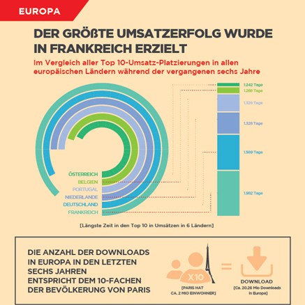 Wie auf den Bildern zu sehen ist, wurde Summoners War bis jetzt insgesamt über 116 Millionen Mal heruntergeladen. Dabei erreichte es in 87 Ländern den ersten Platz der Umsatz-Charts unter allen Mobile-Games (in Europa: 30 Länder) und in 138 Nationen einen Platz in den Top 10 (in Europa: 39 Länder). Insbesondere in Deutschland und Frankreich, wo sich Summoners War seit dem Release für insgesamt knapp 1.600 bzw. 2.000 Tage in den Top 10 der Umsatz-Charts für Mobile-Games halten konnte, erfreut sich das Spiel großer Beliebtheit. Allein in Europa wurde das Spiel mehr als 20 Millionen Mal heruntergeladen.