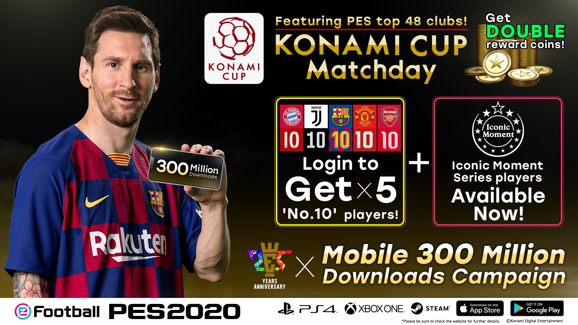 Konami Digital Entertainment B.V verkündet, dass eFootball PES 2020 für mobile Endgeräte bereits über 300 Millionen Downloads verzeichnet. Um diesen Meilenstein und den 25-jährigen Geburtstag der Marke PES zu feiern, startet ab heute eine besondere Ingame-Kampagne.