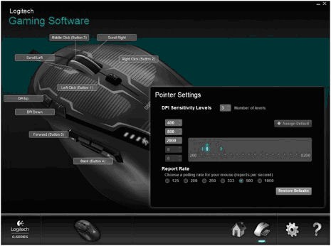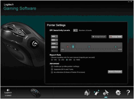 Über die mitgelieferte SetPoint Software von Logitech können wir so zwischen zuvor festgelegten DPI Variablen wählen oder unsere eigenen definieren. In den getesteten Spielen machte sich das sehr positiv bemerkbar. Ein gutes Beispiel ist hier Battlefield 4, dort macht es wirklich Sinn, beispielsweise als Aufklärer mit dem Scharfschützengewehr, beim Zielen über große Distanzen die DPI den Gegebenheiten anzupassen. Die Verarbeitung ist zwar von gewohnter Logitech-Qualität, kommt aber logischerweise nicht an den Komfort der etwas teureren „G500“ und „G500s“, mit ihren leicht aufgeruhten Seiten, heran. Dadurch liegt die Maus nicht ganz so rutschsicher wie ihre großen Brüder in der Hand. Wer also nicht viel Geld in die Hand nehmen möchte, aber dennoch auf dem Schlachtfeld auch in brenzligen Situationen eine ruhige Hand behalten möchte, kann bedenkenlos zugreifen und macht beim Kauf sicherlich nichts verkehrt. Wenn der Geldbeutel allerdings ein paar Euronen mehr in Reserve hat, ist die „G500s“ sicherlich die einen Tick bessere Wahl.