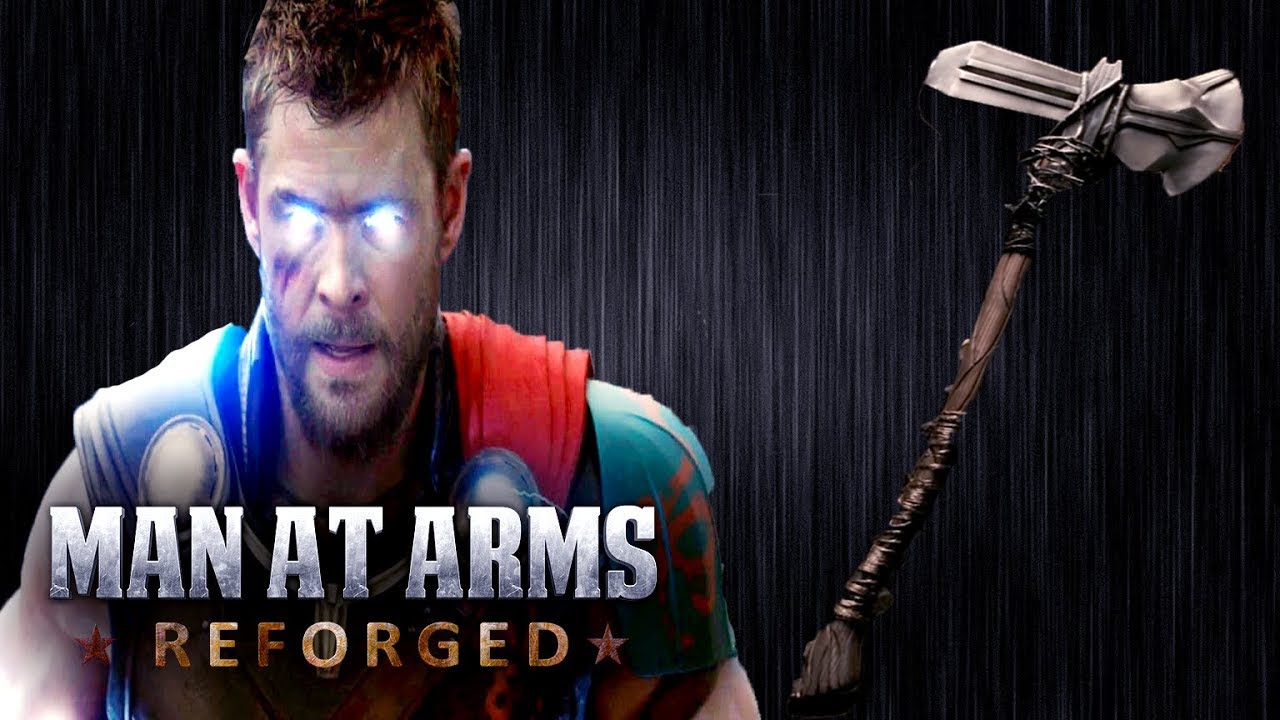 Without further stalling, check out what the badass Blacksmiths at Men at Arms are doing with Thor's new mega-weapon. This thing crushes a coconut that will surely make men far and wide wince in sympathy. Love watching these guys work.