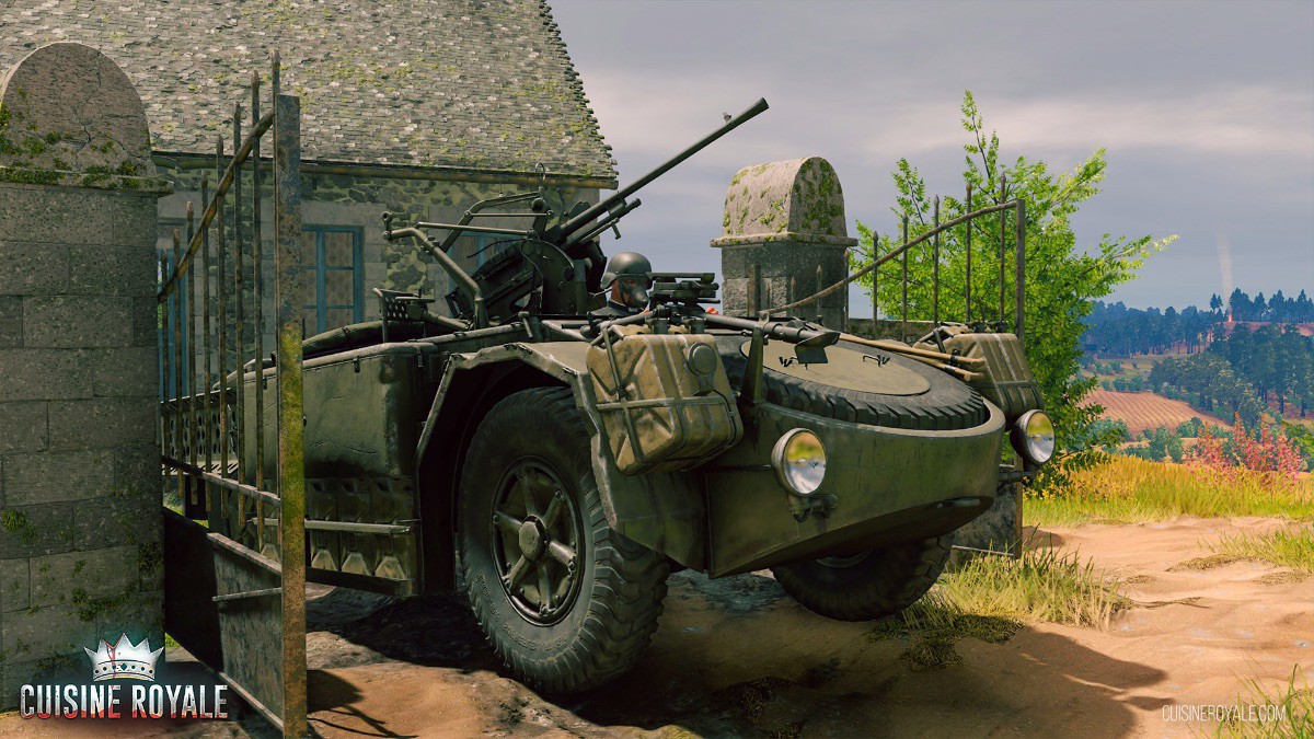 The list of vehicles available in Cuisine Royale is updated with a couple of new ones carrying guns – for the first time in the game. The Luftvärnsterrängdragbil M40 is an anti-air SPG with a 40mm autocannon with 20 shells. Metropolitana is a recon vehicle with a 20 mm autocannon and 100 shells. Players should take the gunner seat to operate these cannons, so a team of at least two people is needed to both drive and shoot the enemy down. These vehicles appear on maps randomly and are quite rare, so it is highly recommended to equip a special item that detects them at distance. For example, leopard panties will do.