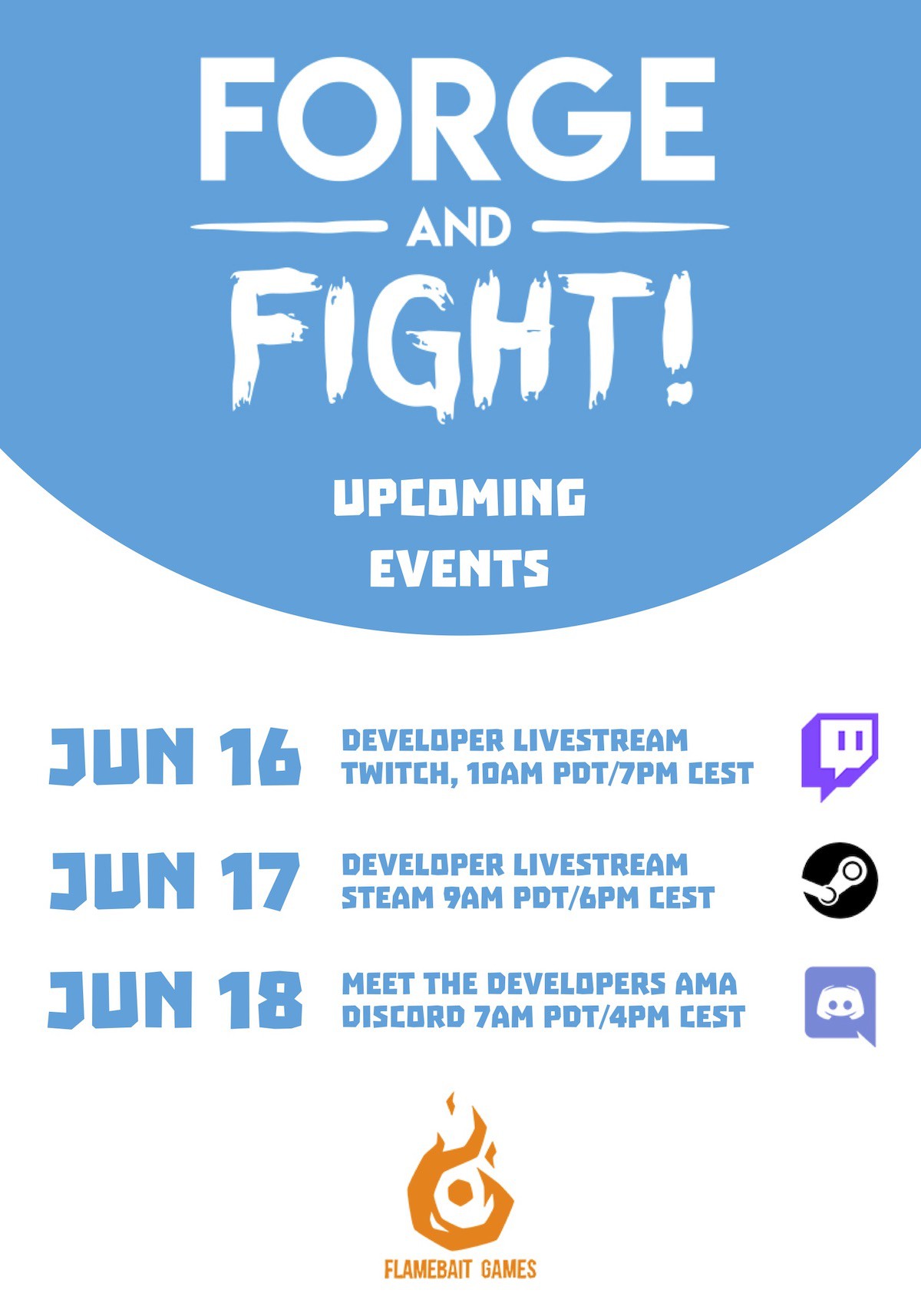 In each round you are given random weapon parts to work with to create the most effective, silly or completely random weapon possible and then fight your way through rounds against other players. The new beta being debuted this week at the Steam Game Festival features two maps and four game modes, including Turf War, Push the Cart, Brawl and Last Team Standing! Additionally, the Flamebait team have an action-packed week of live developer streams and a meet-the-devs AMA in store for players taking advantage of the Steam Game Festival to see what's coming up on the PC gaming horizon! For more information and to view the full schedule, visit the Forge and Fight! Steam page today!