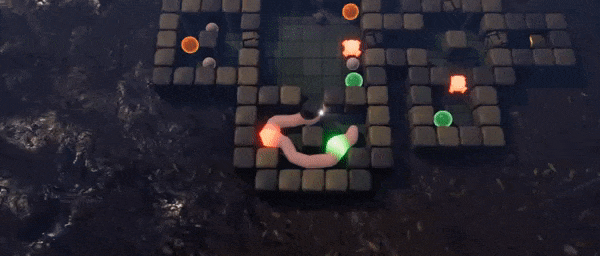 Worm Jazz appeals to every type of player: from puzzle aficionados who will enjoy unearthing the path through the labyrinthine levels, to the completionists who will attempt to gobble all the food in each stage; while casual players will enjoy the challenge of progressing through the 50+ stages. The open world overworld structure allows players to prioritise which tasks to tackle first, with wormholes and boulders popping up as new environments become available. With no timer, Worm Jazz can be played at your own pace and every move can be undone. This laid back atmosphere is complemented by a swanky soundtrack composed by jazz maestro Oliver Getz, who painstakingly put together loops of calming, upbeat tunes to chill out to. Worm Jazz can at times confound challengers, so this smooth soundtrack offers the chilled vibe needed to master the maze.