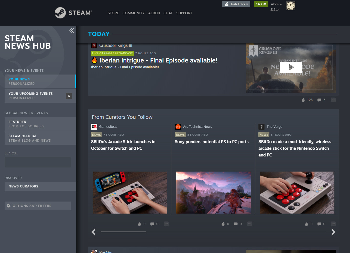 Up until now, the Steam News Hub has been a place to find updates and announcements directly from the developers of games you play, Wishlist, or follow. With this update, you now have a broader selection of news available to you. Add as many of these additional sources to your personalized News Hub as you like. They’re all available free of charge.