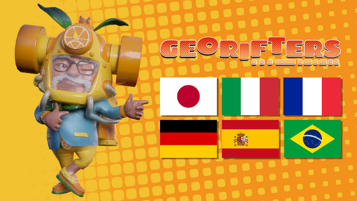 - Six new languages have been added to give Georifters some extra international flavour: こんにちは Japan, Ciao Italy, Bonjour France, Hallo Germany, Hola Spain and Ola Brazil, welcome to the manic terrain bending world of Georifters!