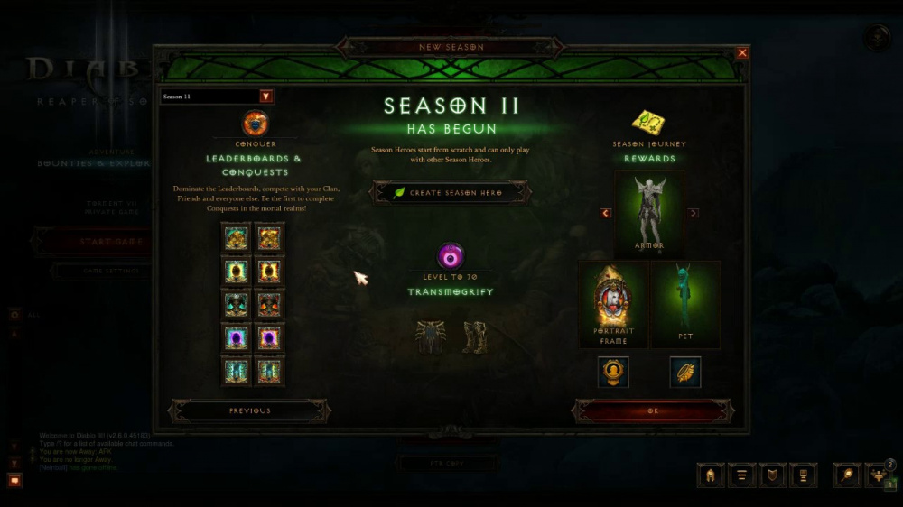 Естественно призы будут не только для Некроманта, каждый класс получит Haedrig’s Gift— бесплатный Набор Класса бесплатный за прохождение Сезонных Приключений Глав 2, 3, и 4. Варвары смогут выиграть набор Wrath of the Wastes, Крестоносцы могут заслужить набор Roland’s Legacy, Охотники на демонов набор Unhallowed Essence, Монахи Raiment of a Thousand Storms, Ведьмаки наборн Helltooth Harness, и Колдуны Tal Rasha’s Elements.